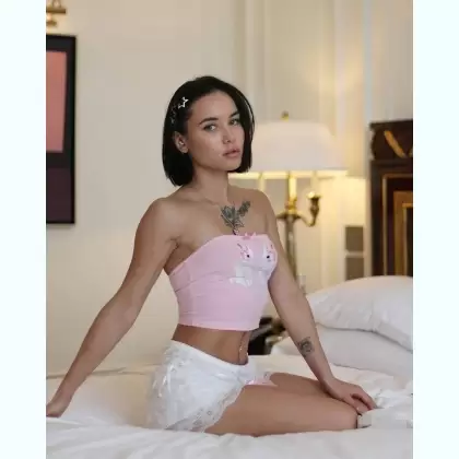 Сочная кокетка в сатиновом топе готова к новым приключениям без лишних слов