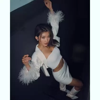 Мне нравится, когда ветер играет с перьями на платье...